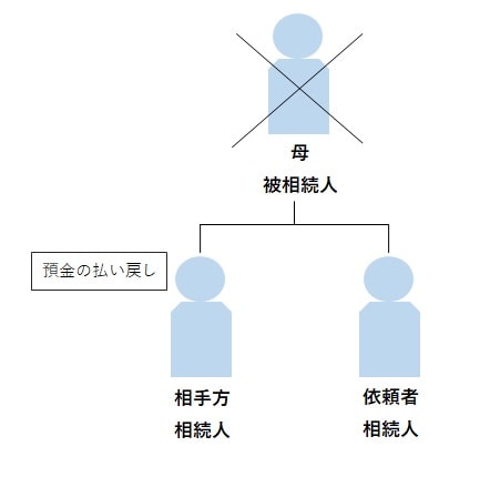 依頼者の母(被相続人)が亡くなり、相続人は依頼者と姉(相手方)の2人でした。